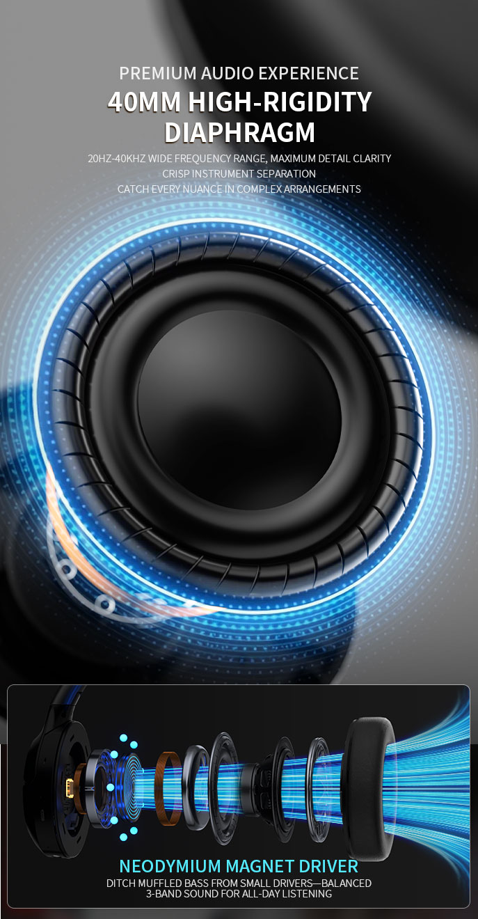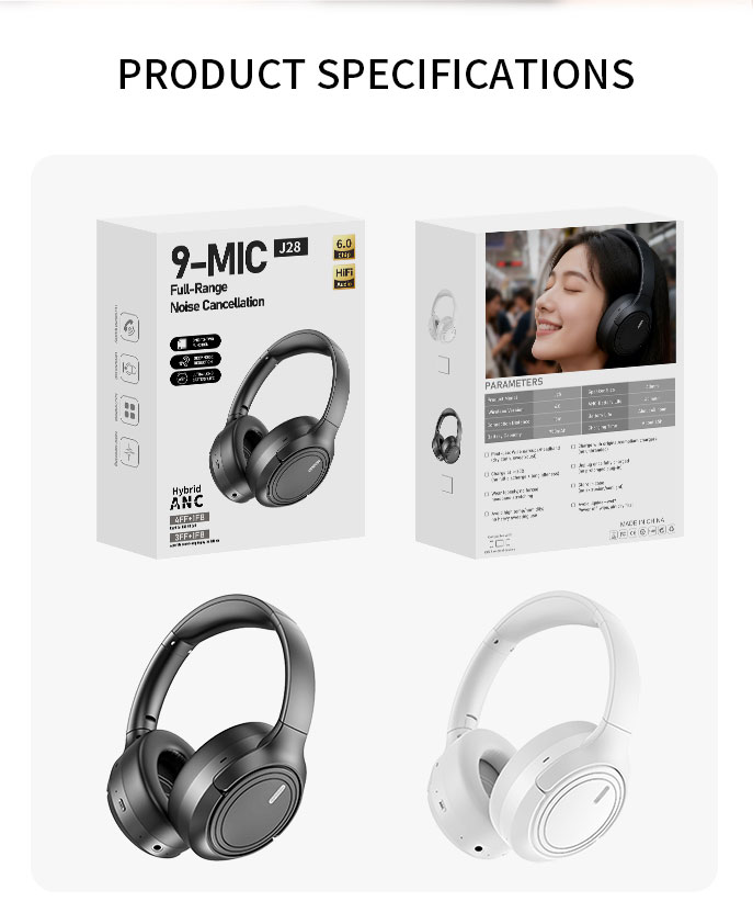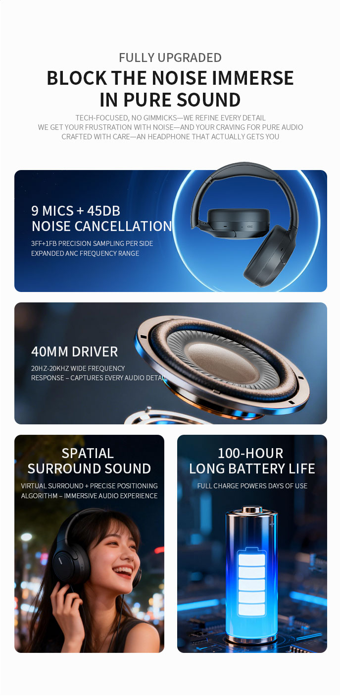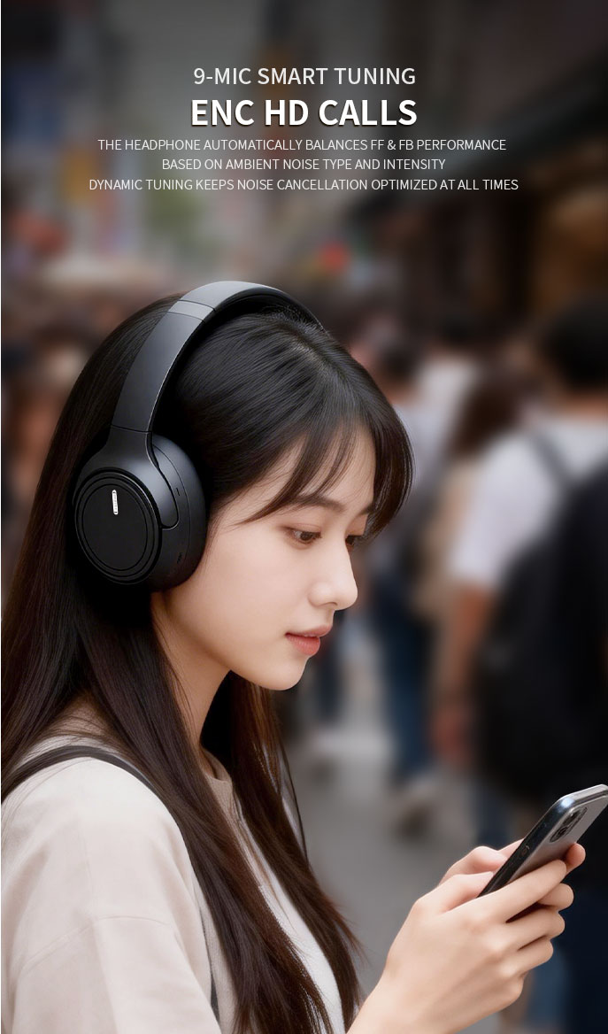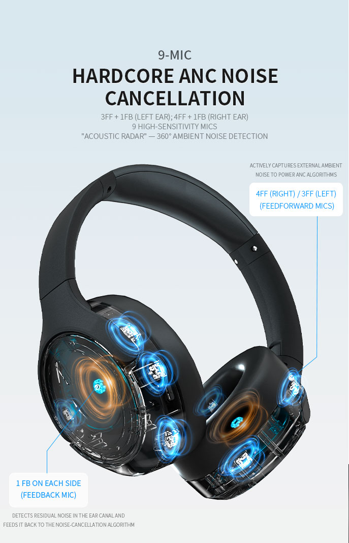Wireless Headphone with 9 Mics Hybird ANC Noise Cancellation