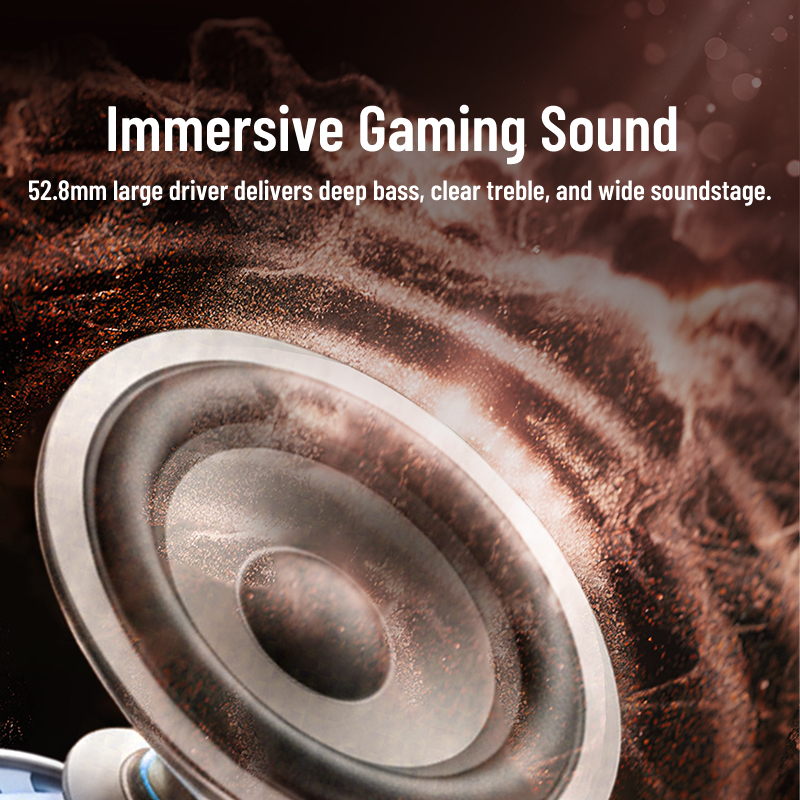52.8mm large driver delivers deep bass, clear treble, and wide soundstage.