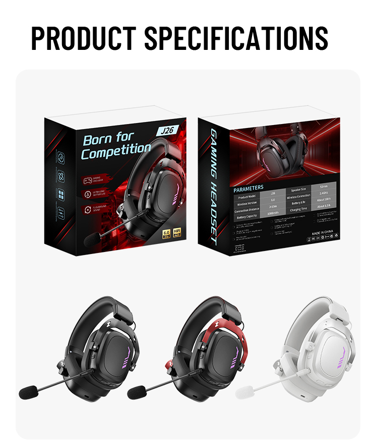 Bluetooth 6.0 Over Ear Gaming Headset ENC Noise Cancelling Headphones 2.4G Wireless Headset Long Bat