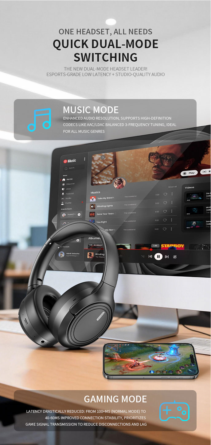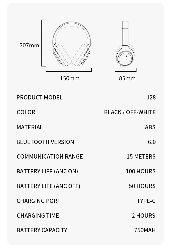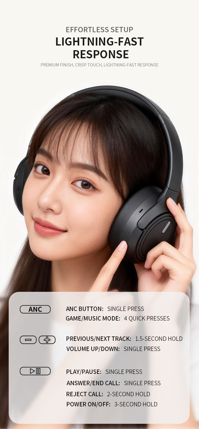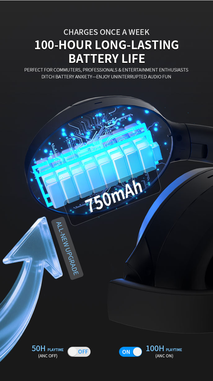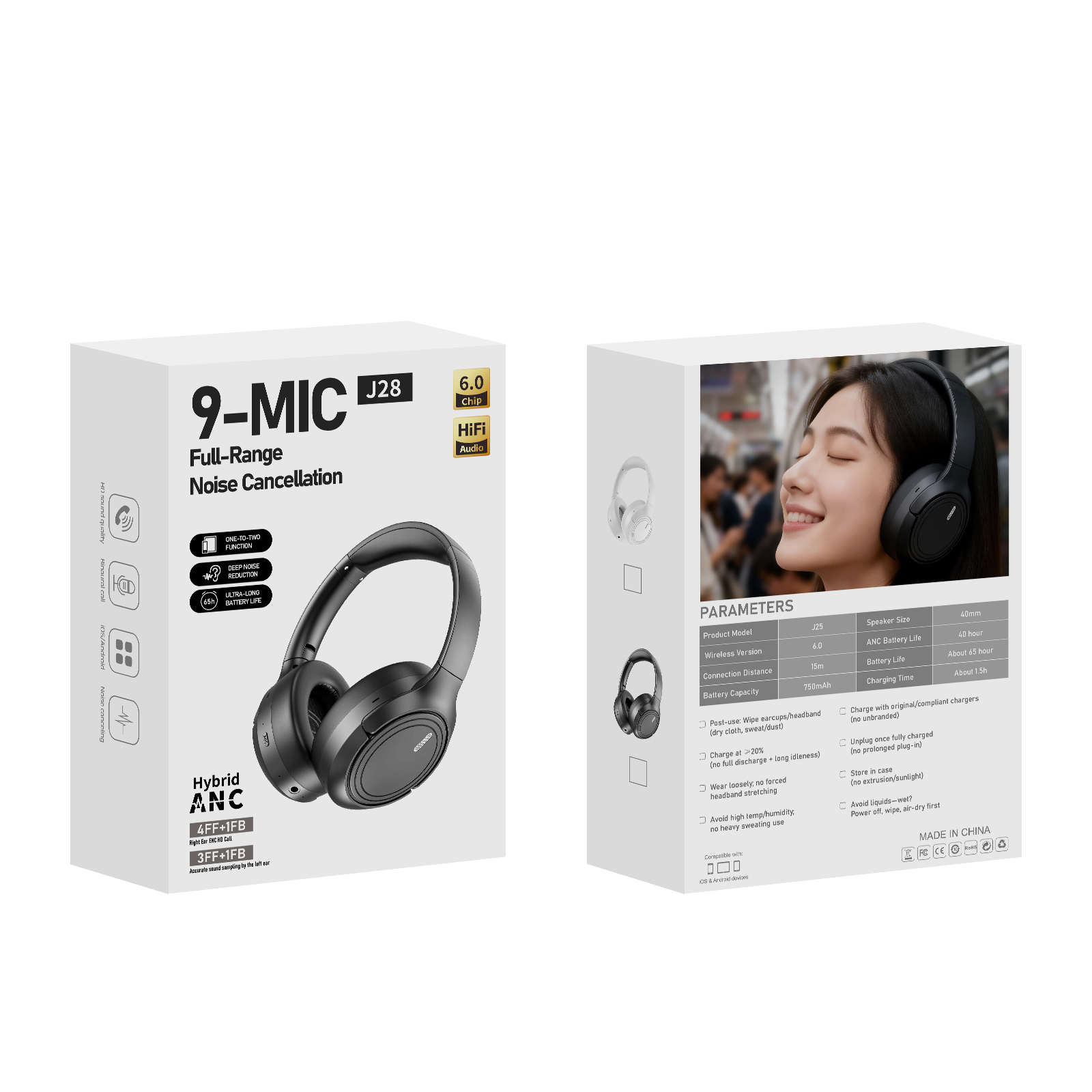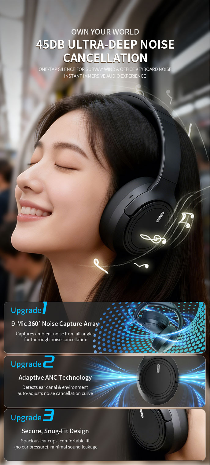 Wireless Headphone with 9 Mics Hybird ANC Noise Cancellation