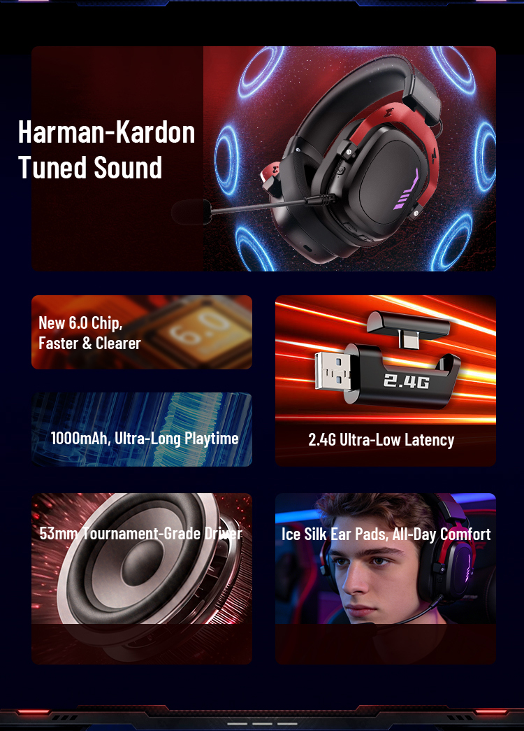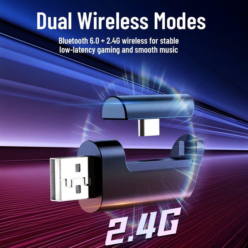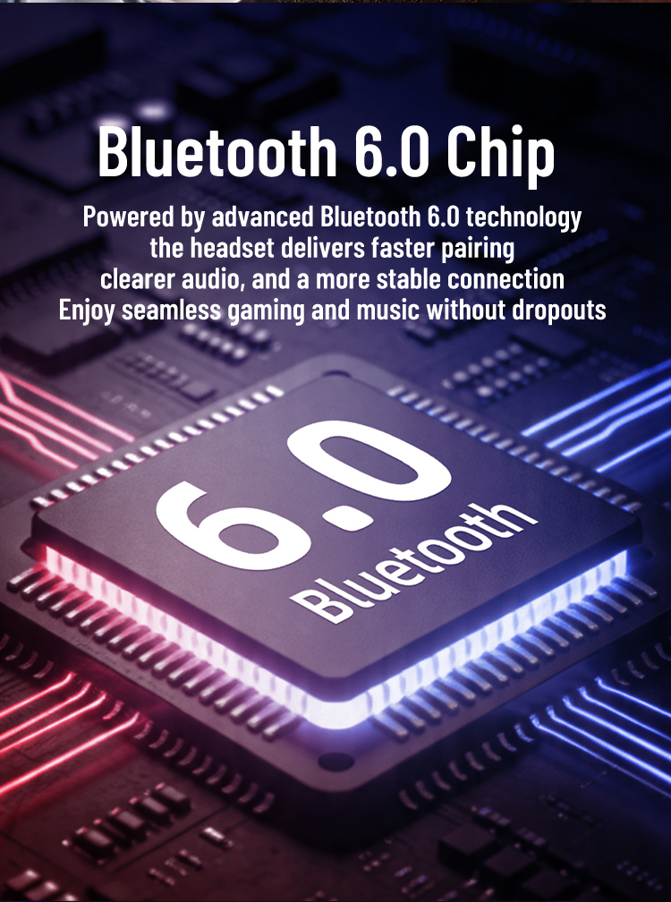 Bluetooth 6.0 + 2.4G wireless for stable, low-latency gaming and smooth music.