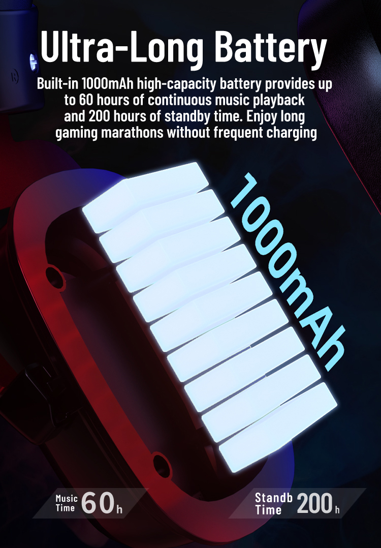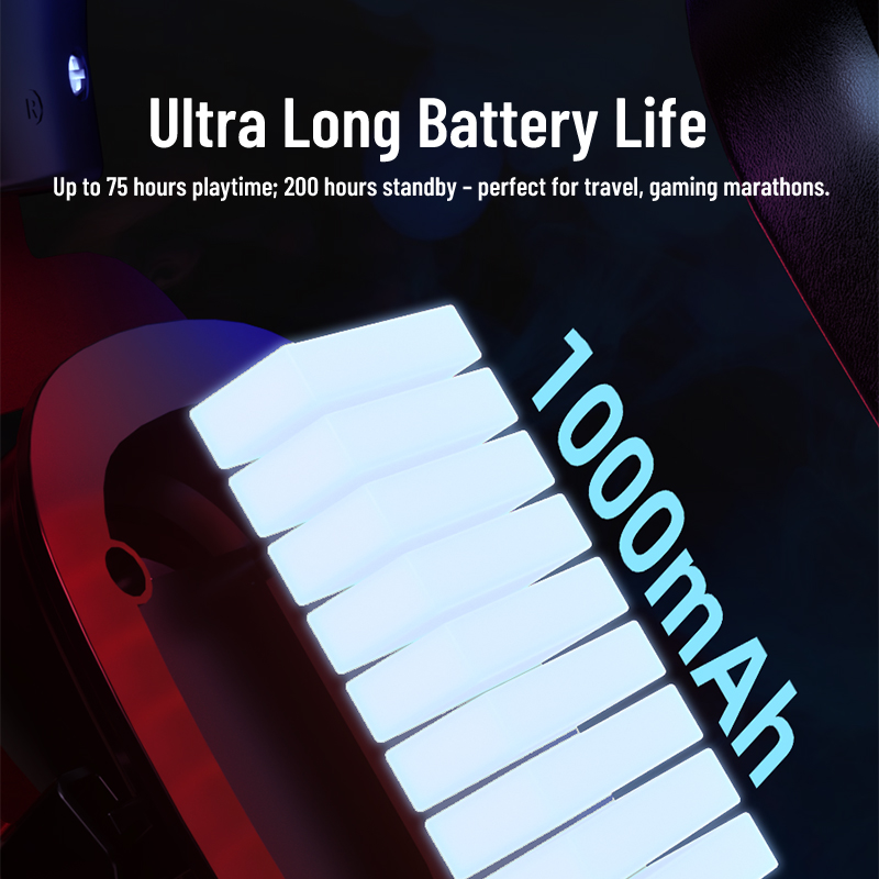 Up to 75 hours playtime; 200 hours standby – perfect for travel, gaming marathons.