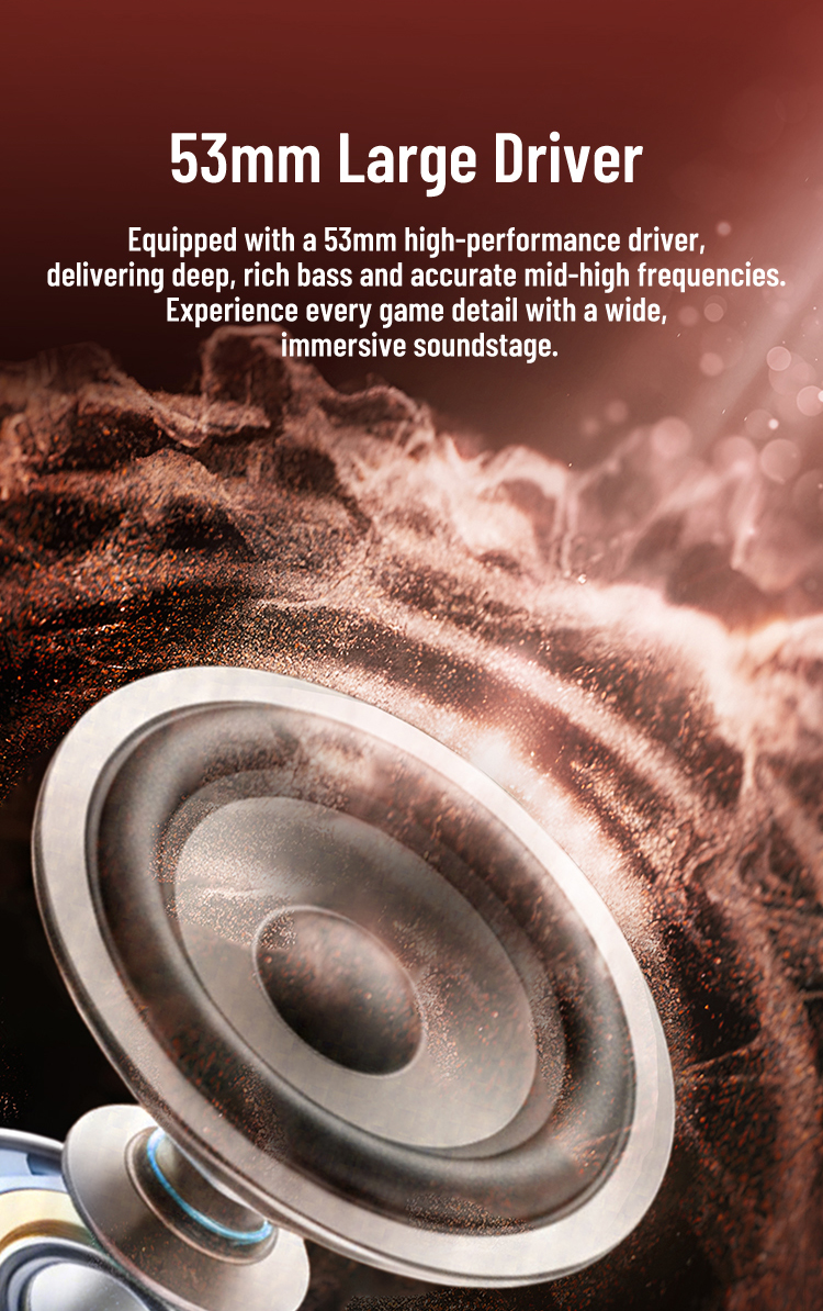 52.8mm large driver delivers deep bass, clear treble, and wide soundstage.